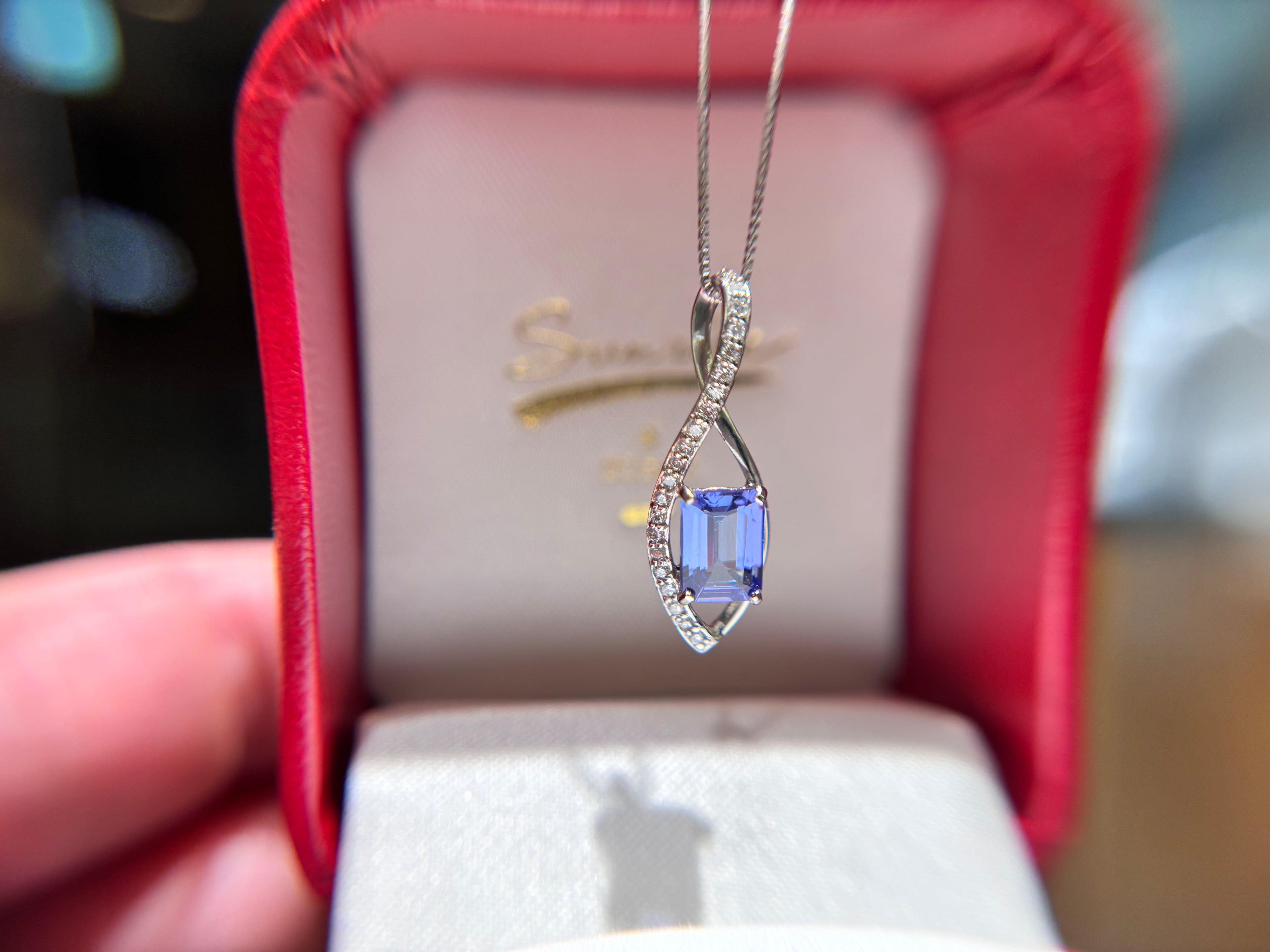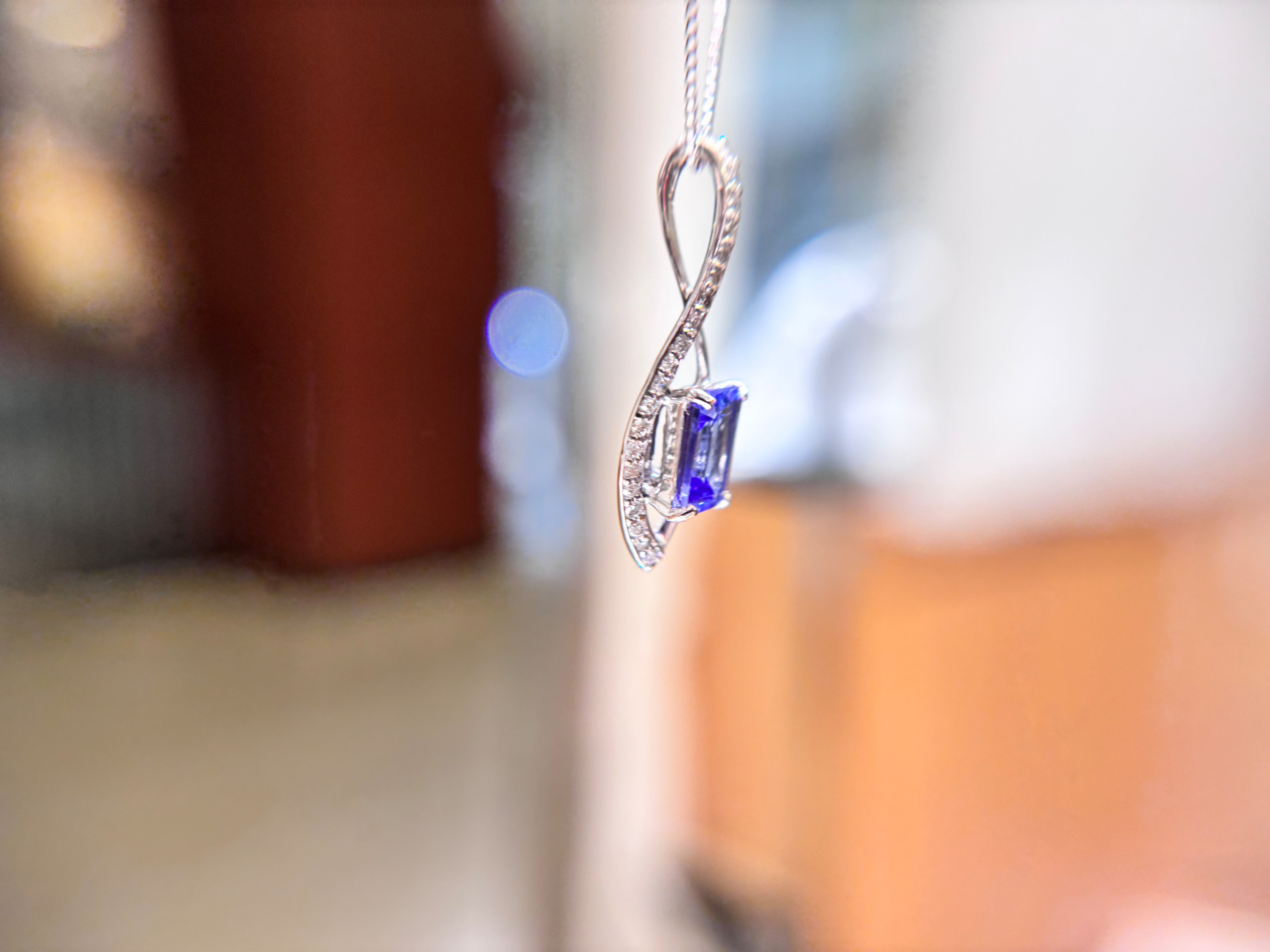 色斑(いろむら)が出やすいため難易度が高いとされる「角カット」を、あえて選択できるほど、原石のクオリティにこだわりました。内包物をほとんど感じさせないクリアな質感が、タンザナイト特有の多色性をよりピュアに引き出しています。