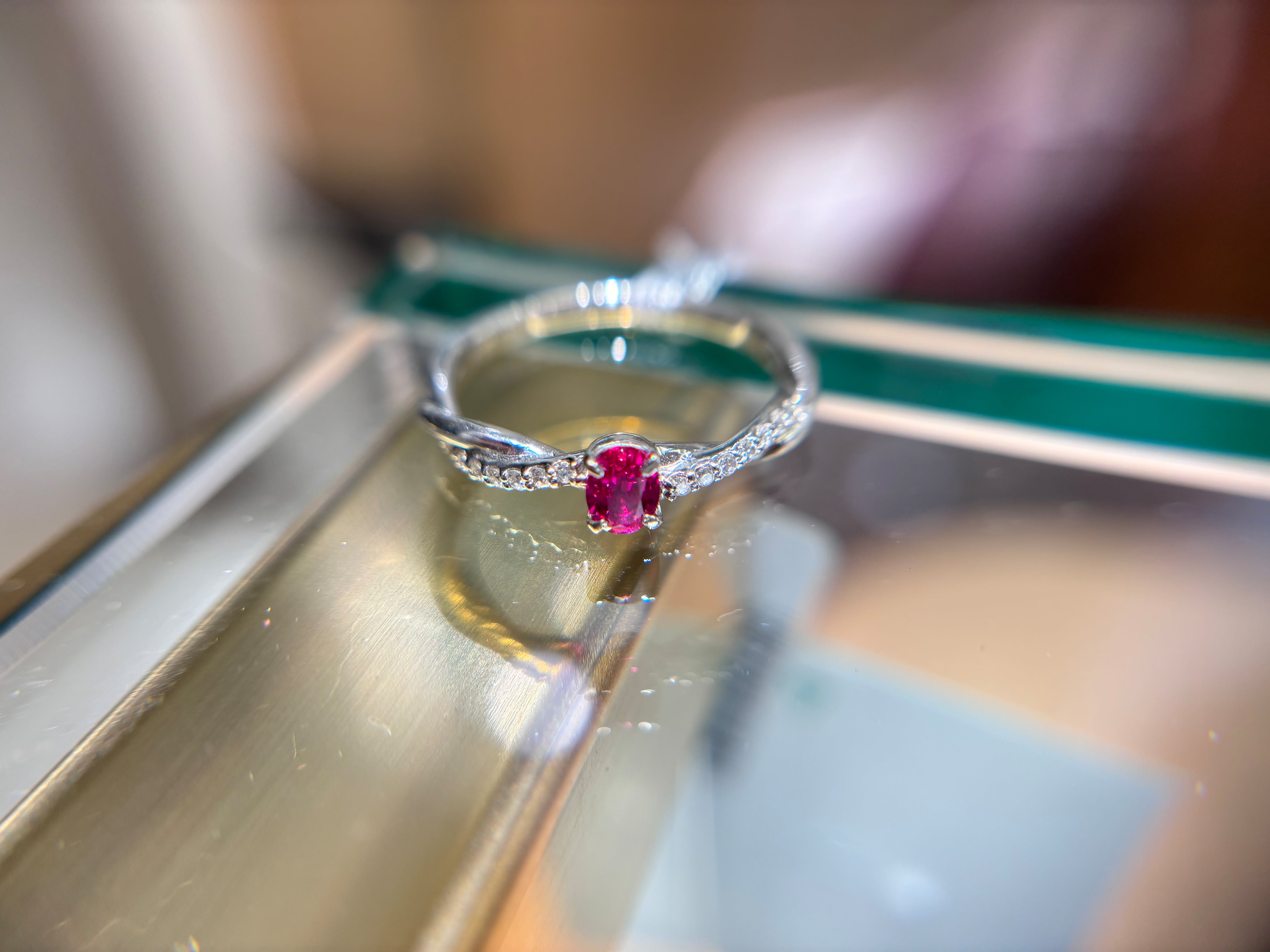 シンプルなようでルビーの鮮やかさが華やぎます。