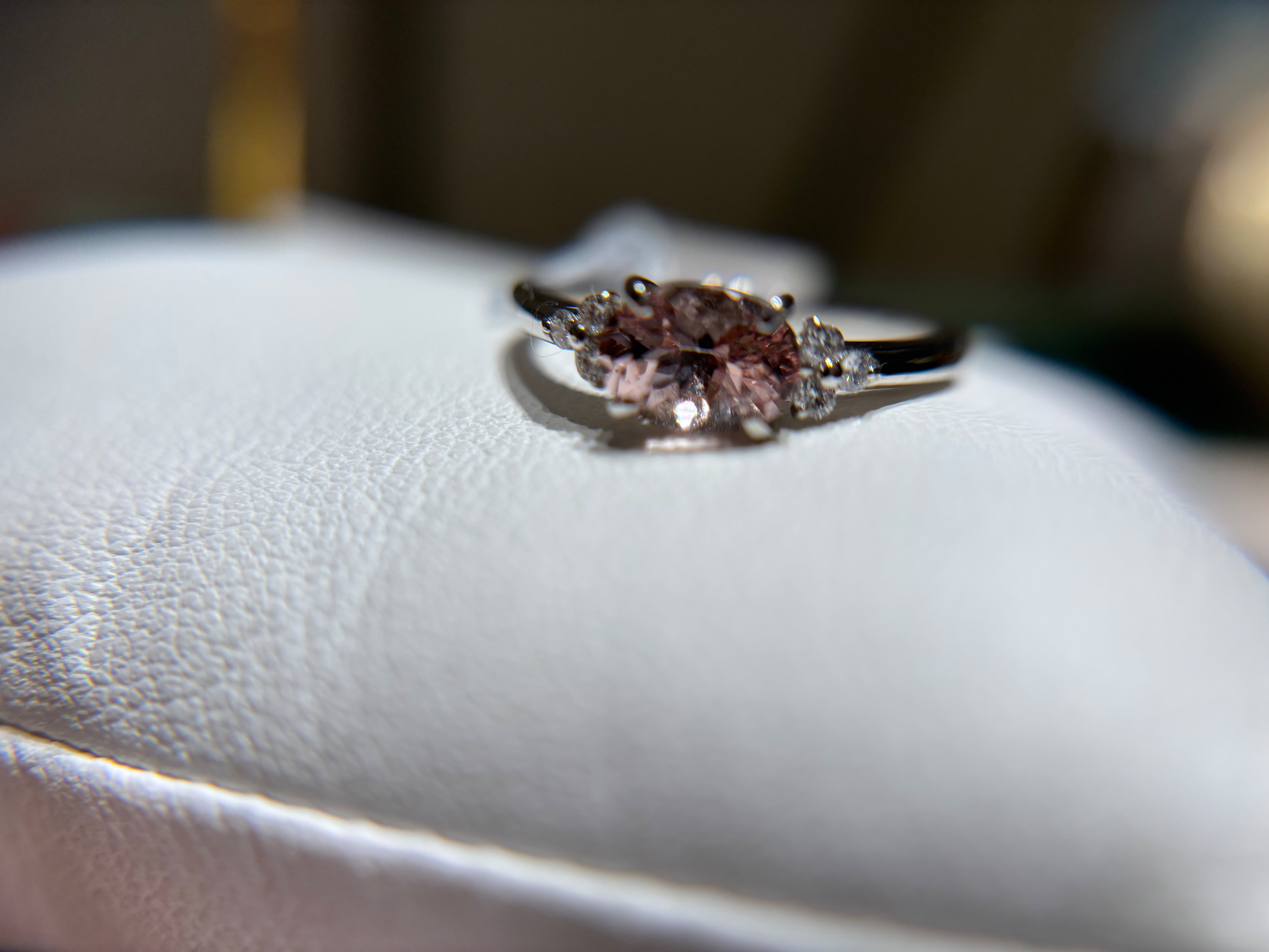 この宝石にはピンクゴールド台を使用したものが非常に人気が高いのですが、