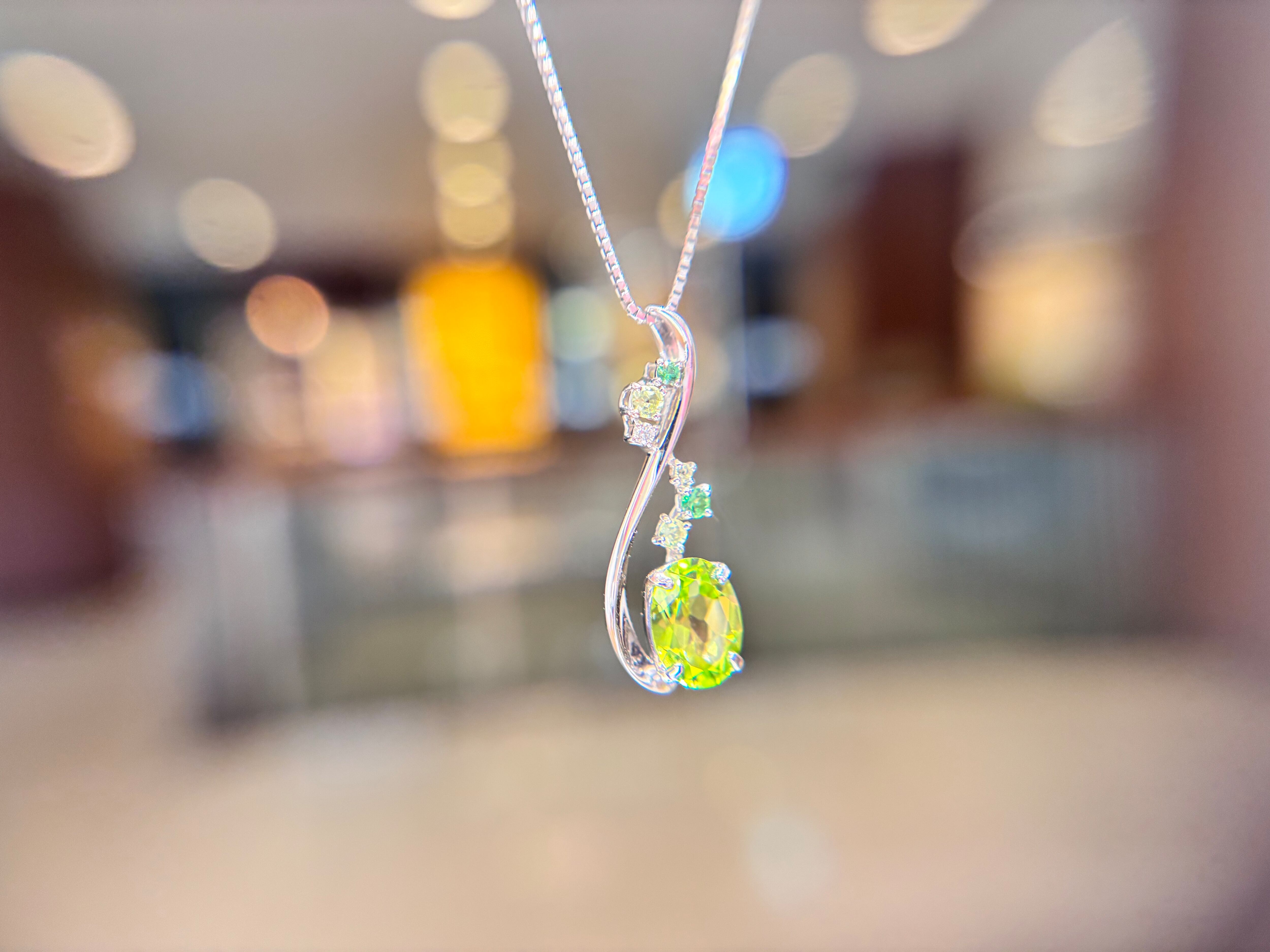 ペリドットは「幸福」「希望」の象徴とされる宝石です。このネックレスを纏うことで、日常に明るいエネルギーをプラスし、自信を持たせてくれることでしょう。特別な日から普段使いまで、幅広いシーンにフィットするアイテムです。