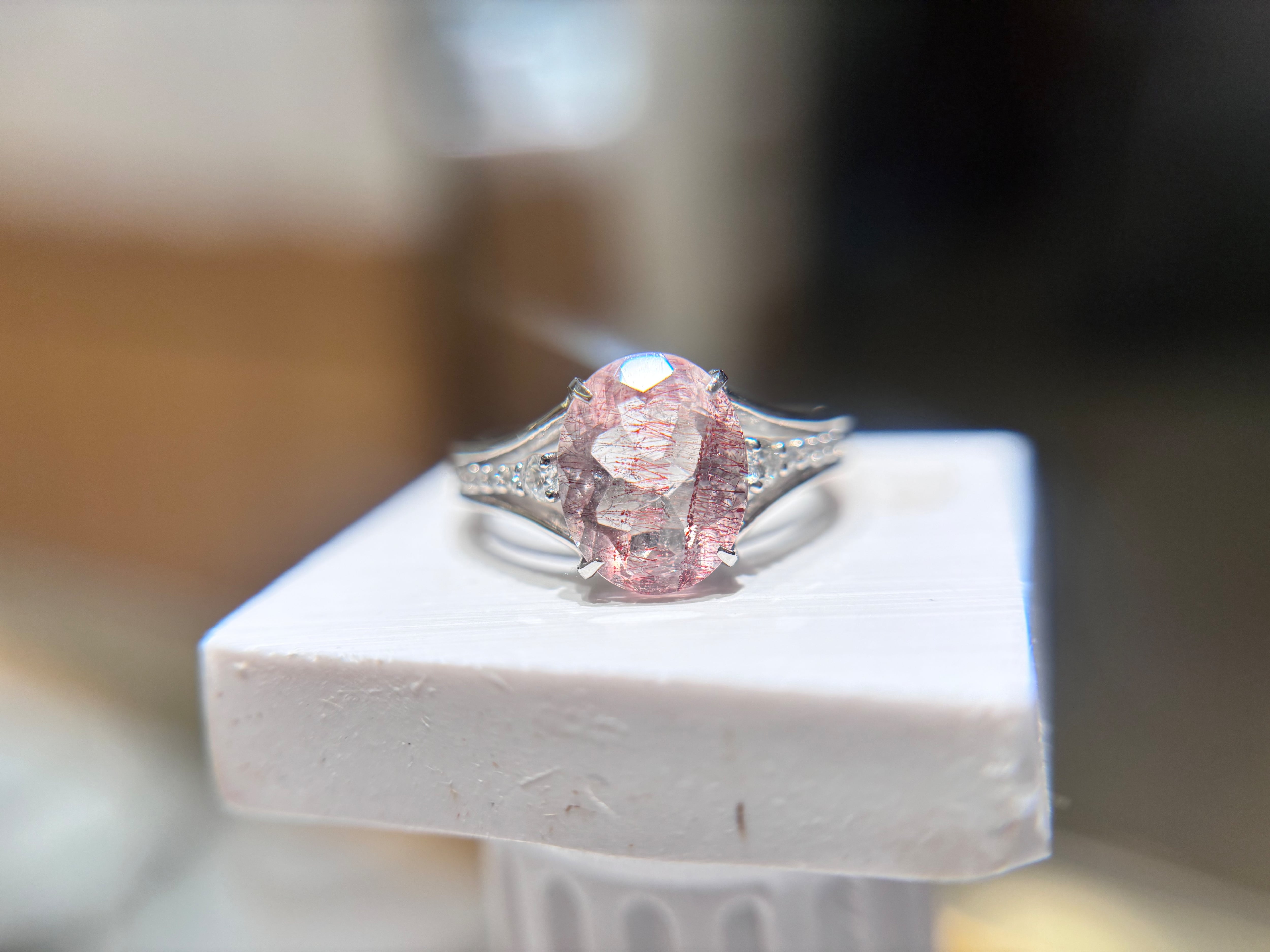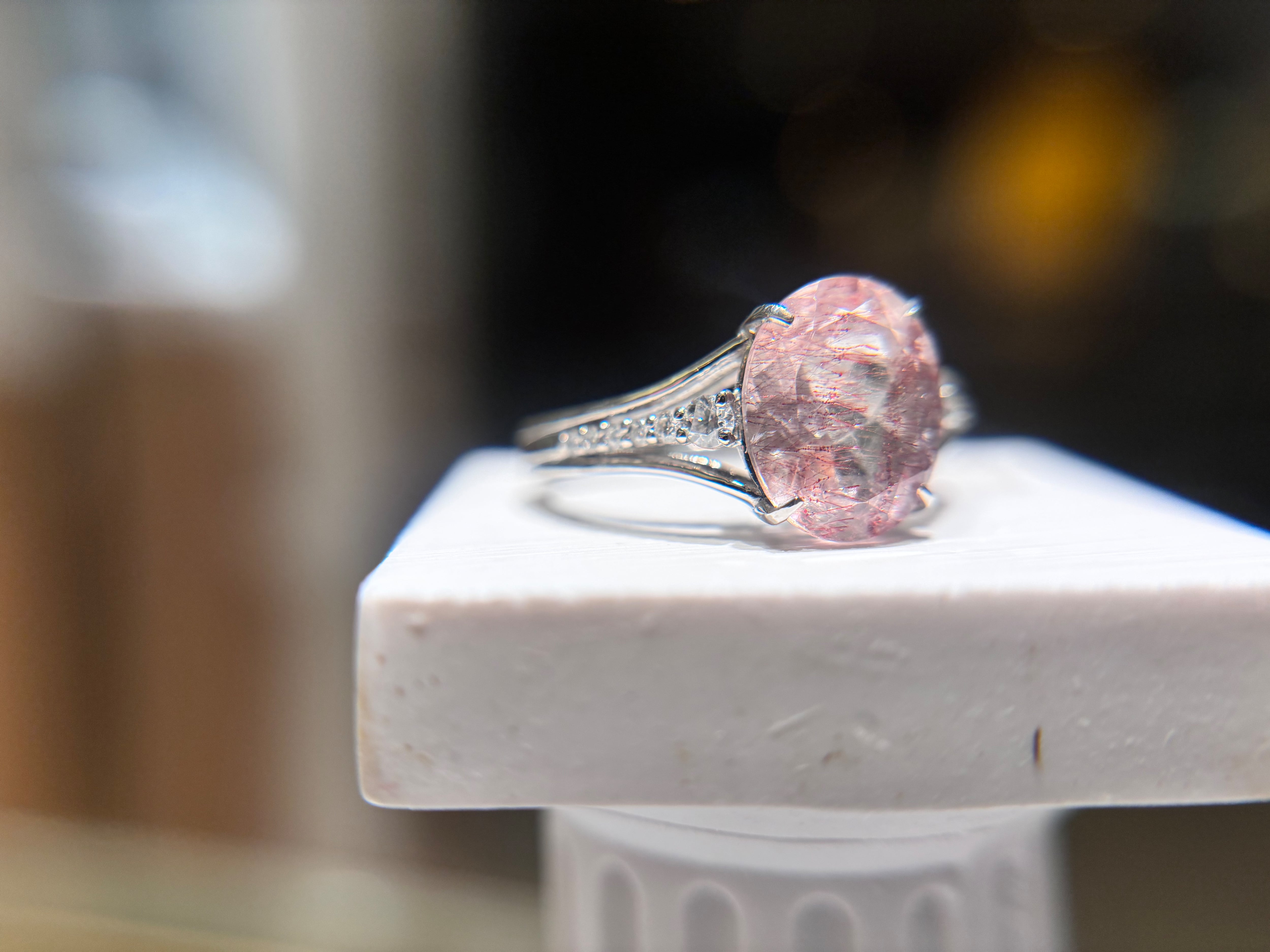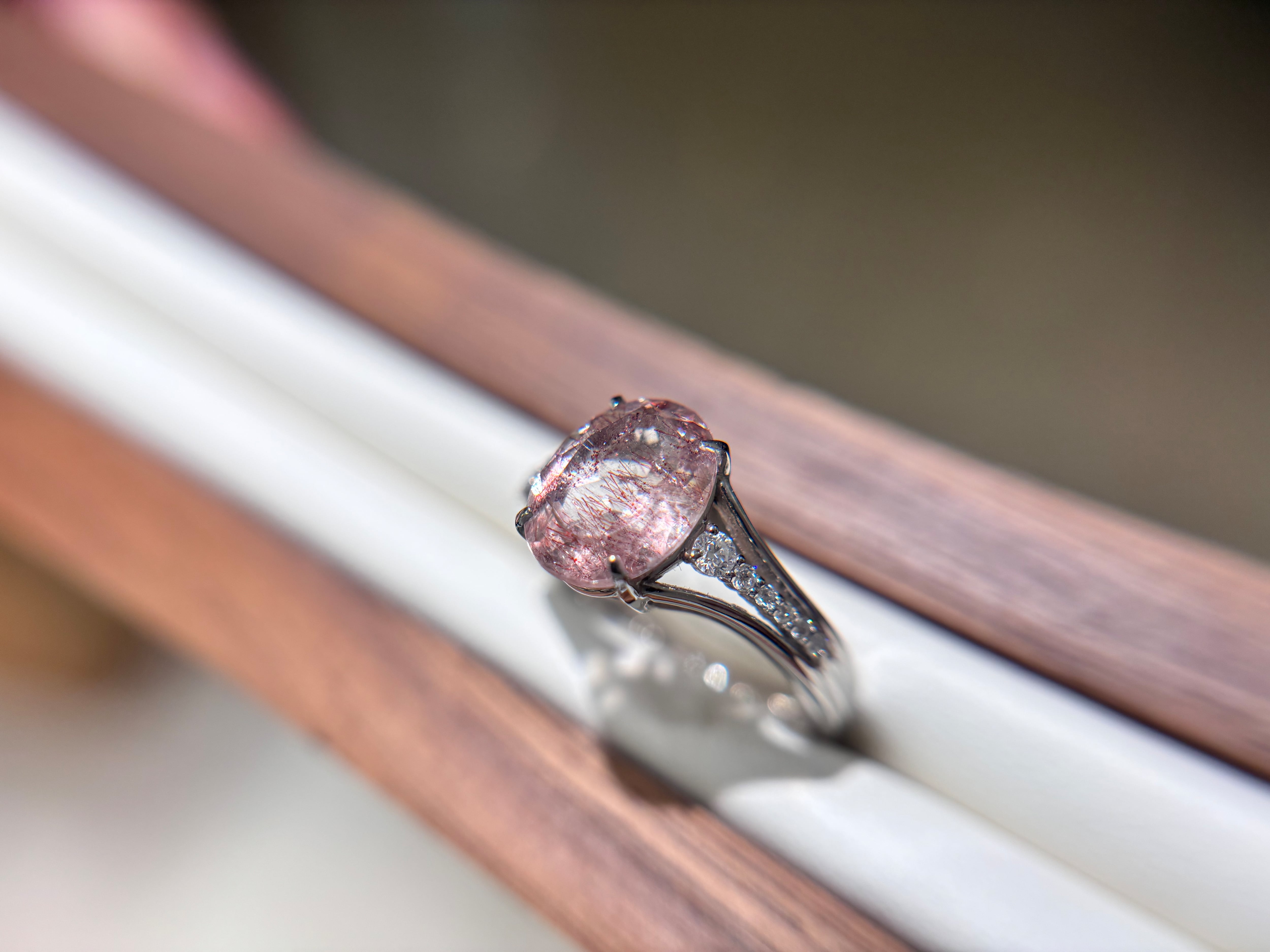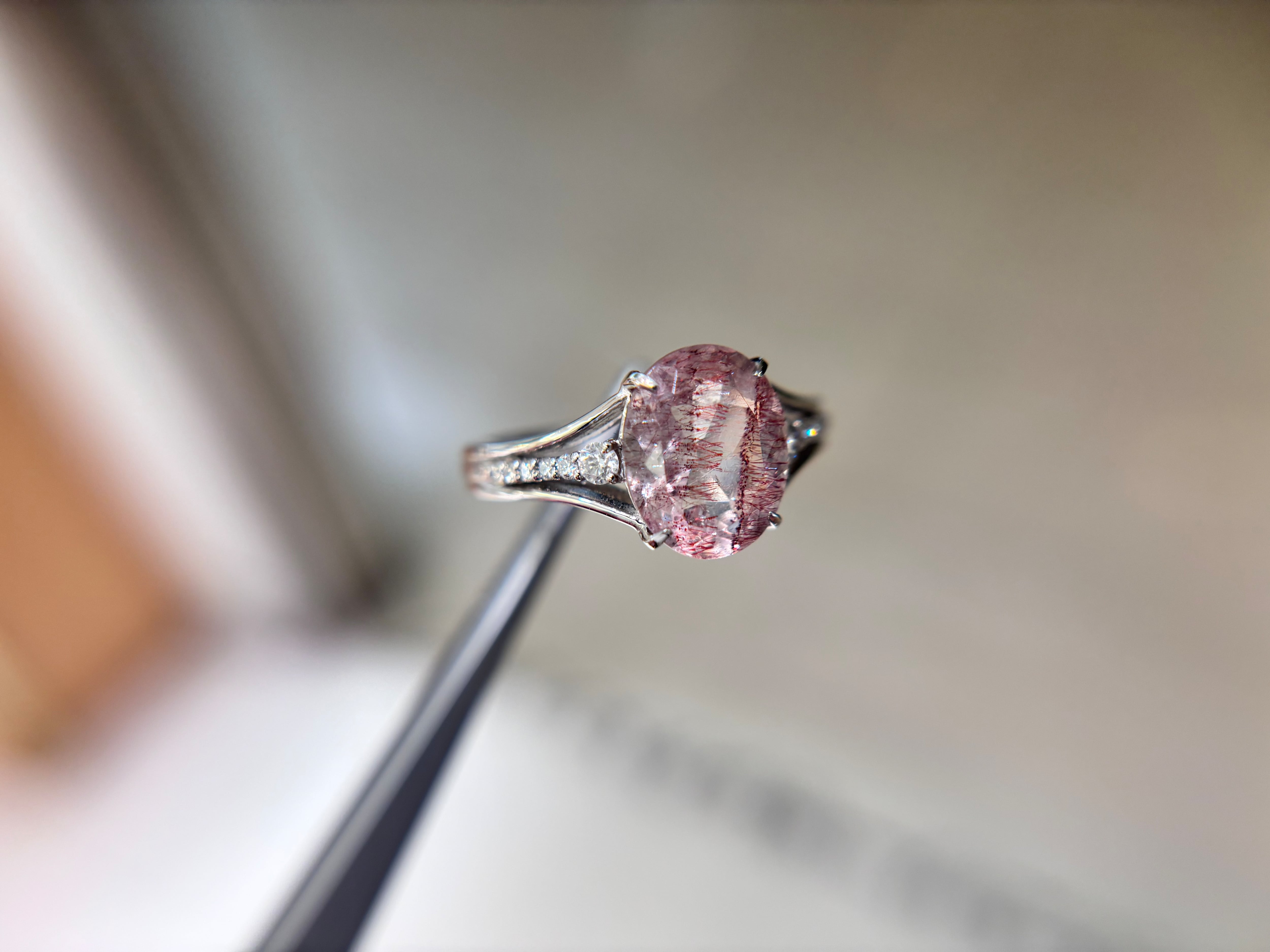 エレガンスと唯一無二の美しさを兼ね備えたPtゲーサイト・レピドクオーツリング2.204ct 0.12!